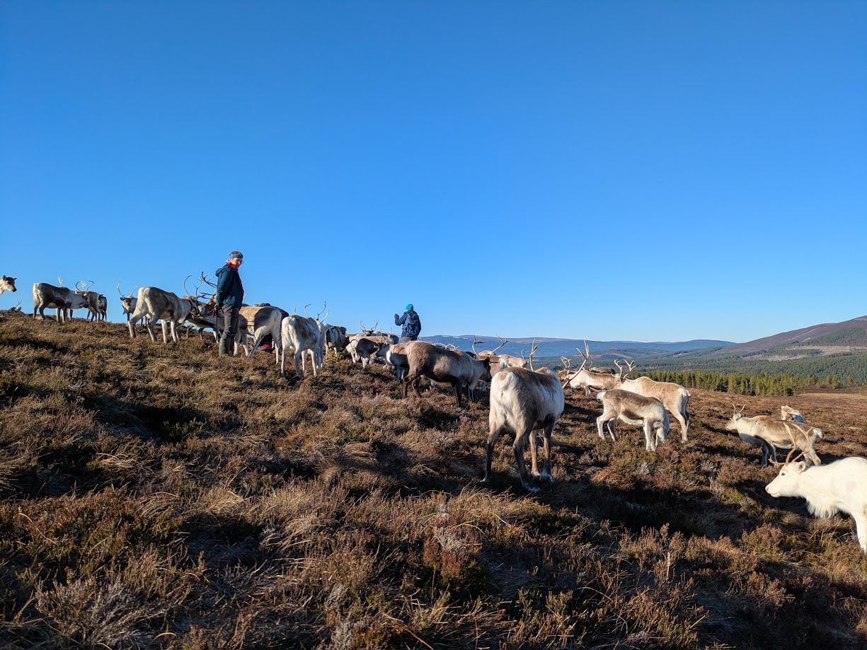 The Hill Trips have been running as normal every day (apart from one where we had to cancel due to wild weather!) and we’ve been taking visitors to the free ranging herd here on Cairngorm. We’ve also had reindeer on display in the Paddocks for the February half-term holidays. The entire herd is now back out free ranging in the hills, split between two locations. I love this time of year – getting out to see the reindeer in their mountain home every day is an absolute privilege.