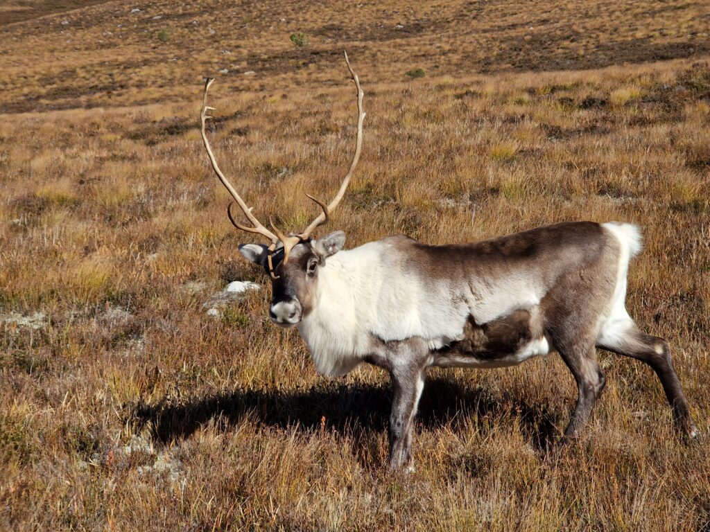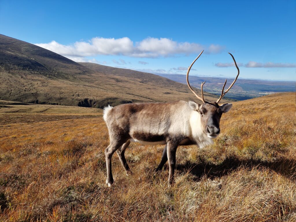 The next day, I headed out to where the group was last seen and enjoyed a wonderful search on a quiet area of the mountainside with gorgeous weather. Lucky for me, the group of reindeer that had been seen weren’t that far from where they had last been reported. So, I headed down to them to identify who was there. Initially, I spotted girls that we had seen often through the summer period; Spy is easy to ID from afar as she is aloof and has a stunning set of antlers, Oatcake is another reindeer we had seen recently and is easy to ID on the free range as, as soon as she realizes you have food there is no getting away from her!