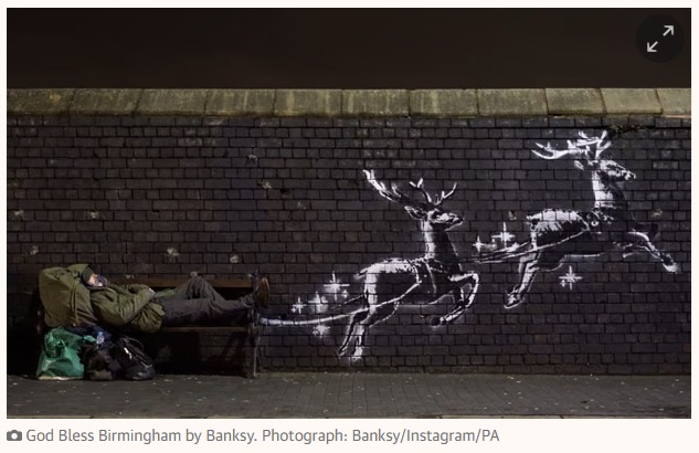 Another image I saw online that I thought warranted a mention, despite not being my own photo, was a new Banksy on a wall in Birmingham. The ‘reindeer’ (prancing Christmas affairs) are pulling a sleigh represented by a bench that is often used by homeless people; in the Guardian’s words: A Christmas cracker with a bang of reality. I like Banksy’s artwork, but ya know, would have been better if the mural showed actual reindeer…