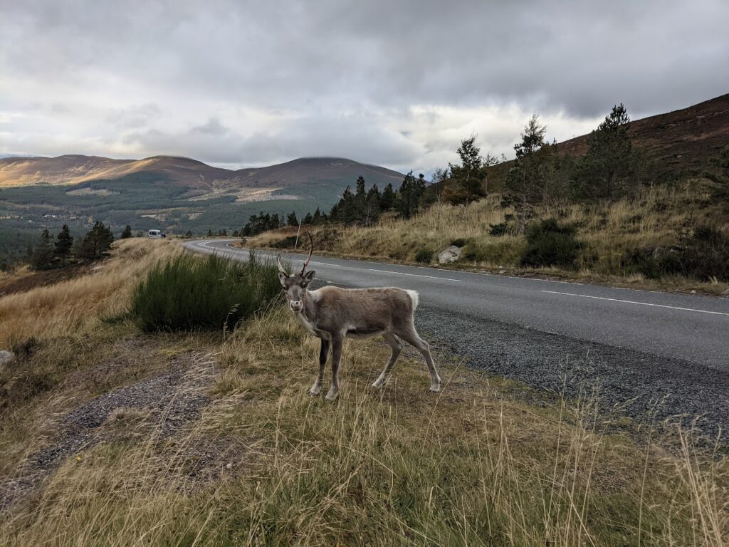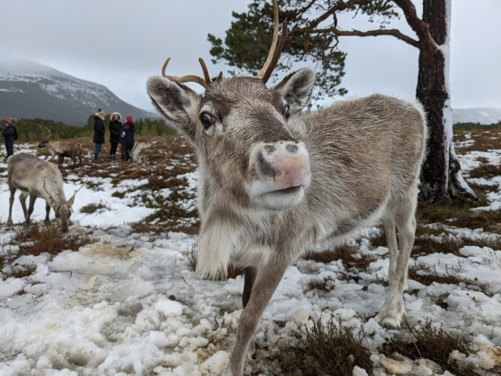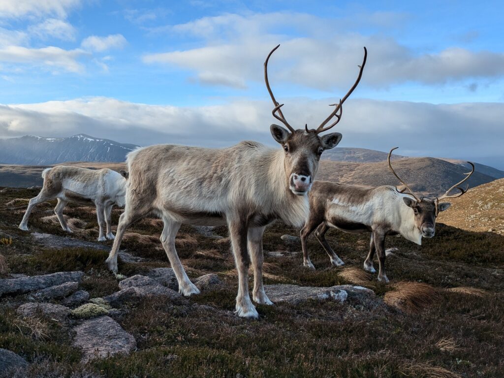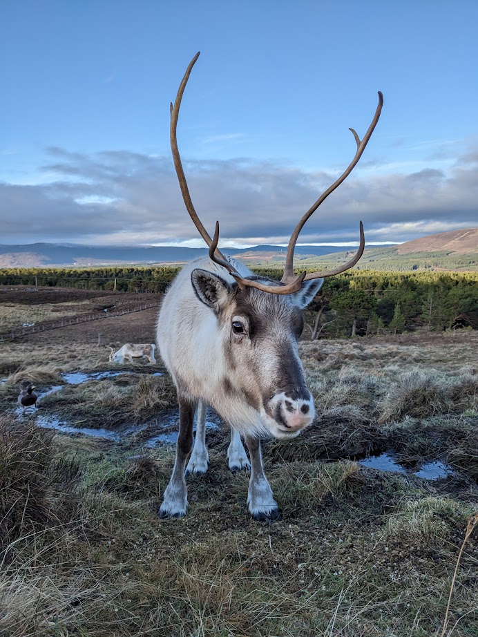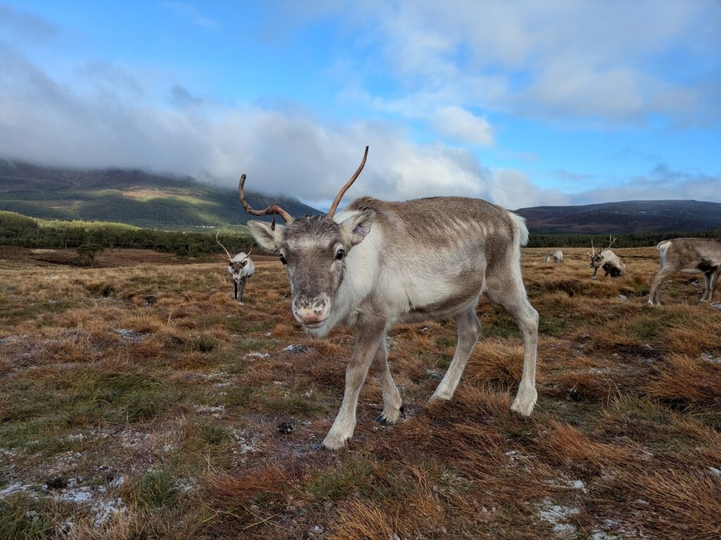 We got several reports from hillwalkers of a single reindeer and we even received a couple of emails with photos of her so we knew she was out there somewhere, but frustratingly we were unable to catch up with her ourselves. There are no fences on the free range so the area they can roam is vast and the sightings of her were all from the furthest part of their range.