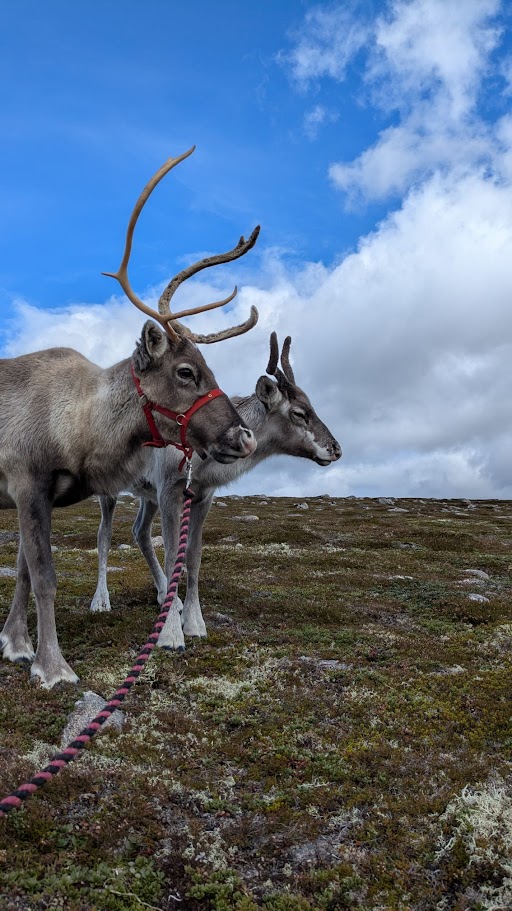 I didn’t meet Chickpea until summer 2021, when I returned to reindeer herding, so I missed the first year of her life but she certainly looked like a gorgeous calf. The first time I remember meeting Chickpea was in summer 2021 whilst I was out on a free range mission. I found a lovely group of reindeer which included Chickpea and her mum Angua, who both looked very relaxed and in good health.