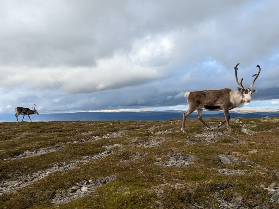 Choc-ice stripping the velvet from his antlers in September 2025. He was one of our main breeding bulls in the rut the following month, so fingers crossed he’ll have passed on his and Cheer’s genes to the next generation of reindeer calves, greatly expanding Cheer’s dynasty.