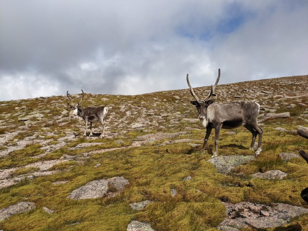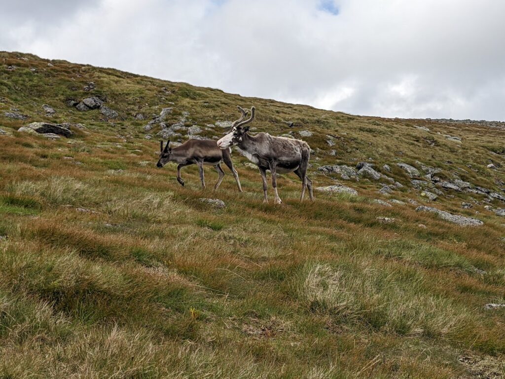 Cheer and her calf Choc-ice out free ranging in August 2022. Unfortunately they didn’t want anything to do with me! Still nice to see them looking good and enjoying themselves in their mountain home. She grew small antlers over the summer as she diverted more energy into her son.