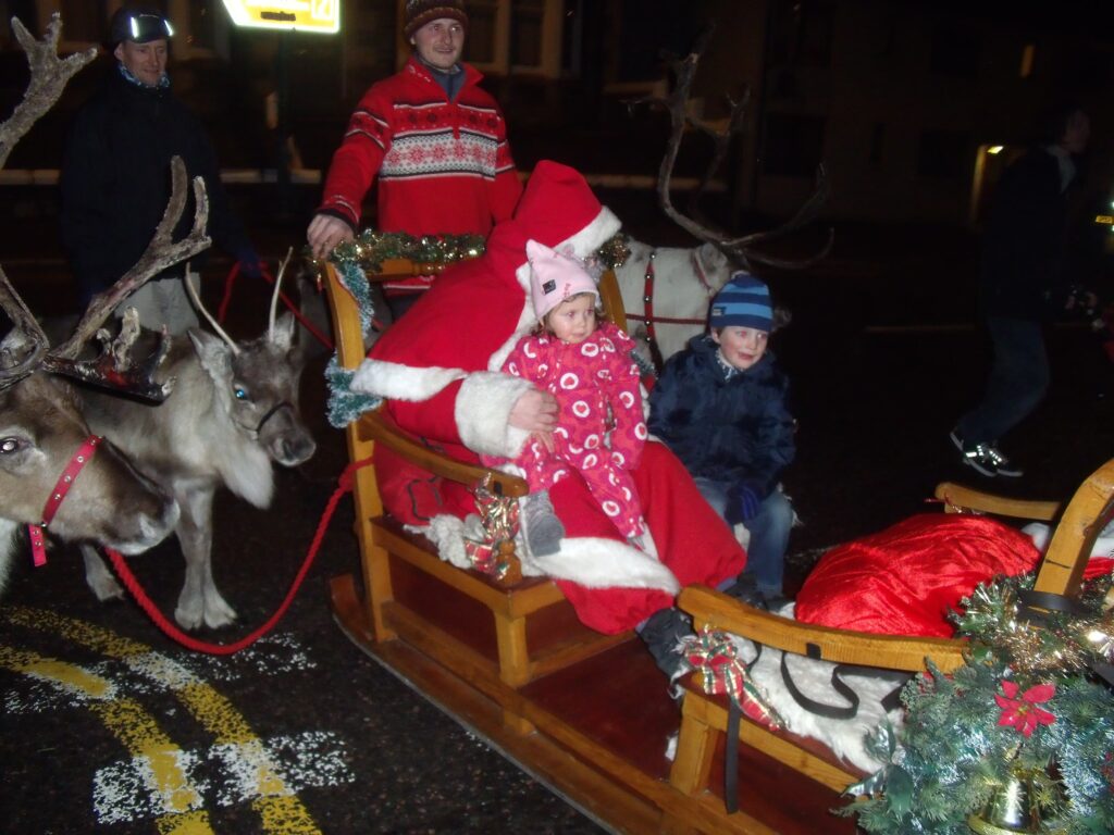 A Christmas Eve tradition of my family is to go see the reindeer parade in Kingussie. When I was younger I often got to go on the sleigh, of course to my delight. Last year Fiona surprised me and I got the chance to pull the front of the sleigh with Akubra and Poirot. This year I had a feeling it would happen again and it did! However, Fiona did give me a warning in the lorry this time. She is known to surprise you…