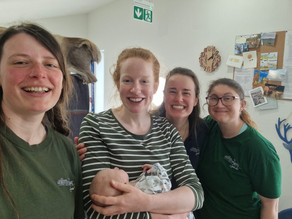 Our female reindeer enjoyed a few more weeks out on the free range before we moved them into our hill enclosure in preparation for the Calving season; there are definitely a few big bellies and udders starting to form. Every year the reindeer herders partake in a calving bet which involves us choosing a reindeer and hoping that they are not the last to calve. If they do, we are required to bake a cake for us to enjoy when we name the calves in September; it isn’t the worst if you lose the calving bet. Some herders chose strategically and others chose their favourite reindeer, so by the end of April all the calving bets are in, and it has become a waiting game!