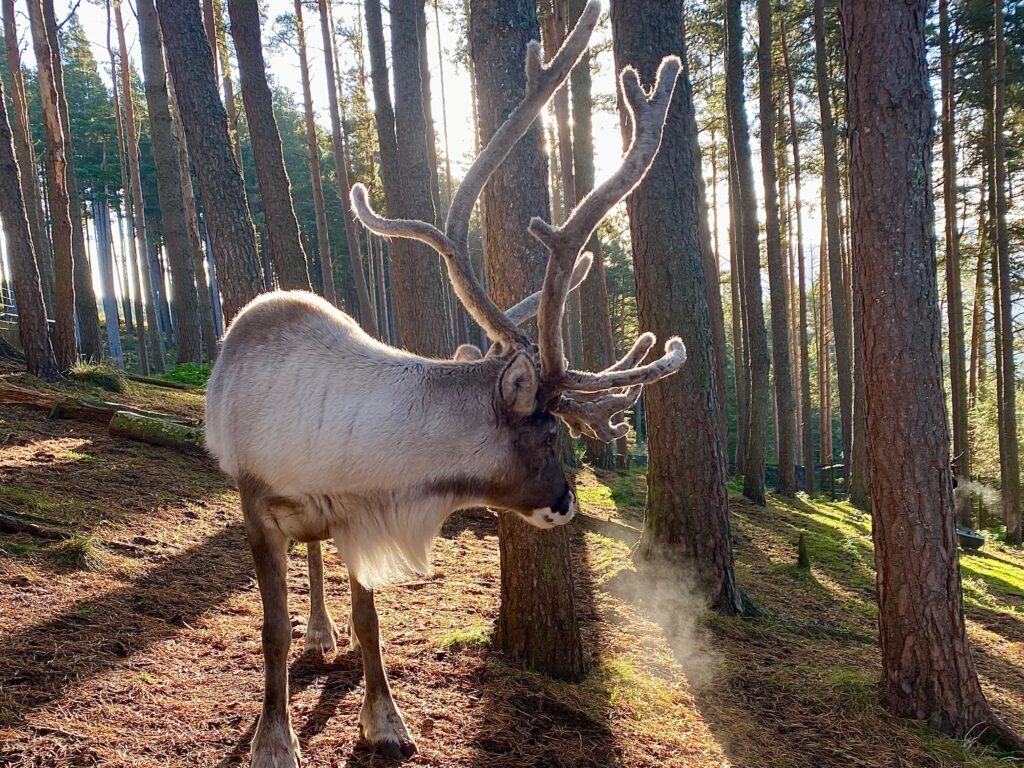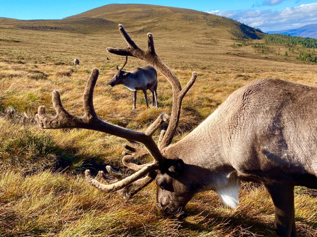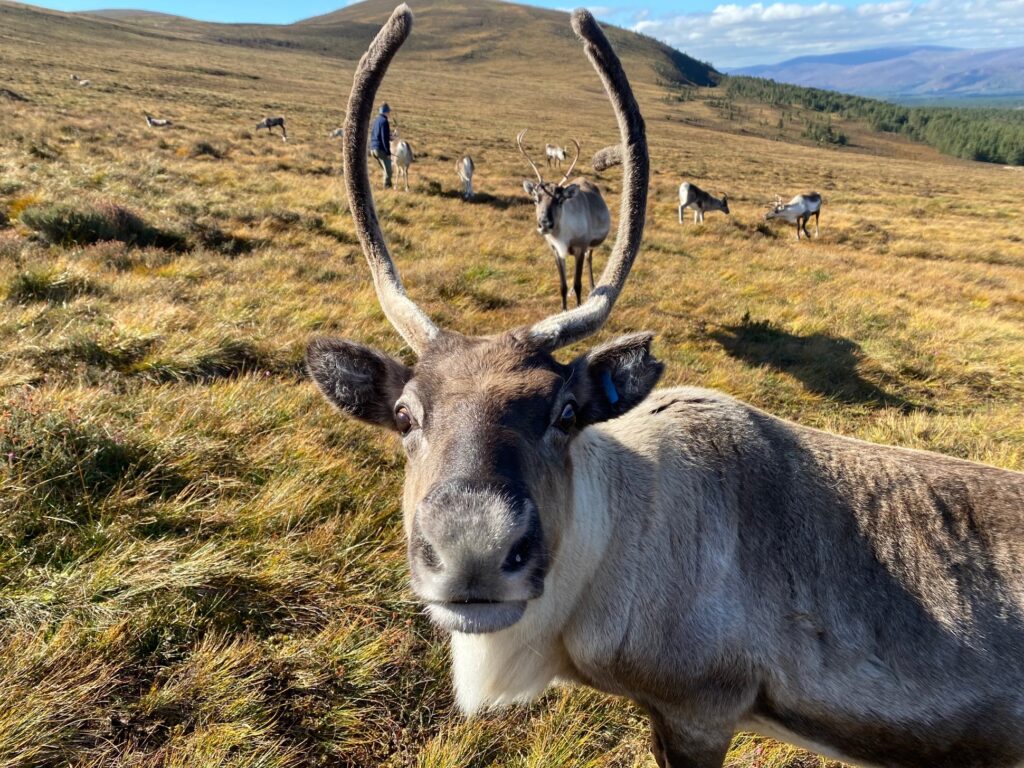 1st of September: Cheer and her daughter Chai in the background. 1st of September: The time of year when the bulls start stripping the velvet. Here is two-year-old Limpopo looking very handsome. 3rd of September: Emmental and her calf back in the enclosure after a summer of free ranging. 3rd of September: A family portrait! Irish, his wee sister, and his mum, Helsinki. Since Helsinki has been back in our enclosure, one-year-old Irish has become rather attached to his mum again! Helsinki is very tolerant and shares her pile of food with her teenage son. 4th of September: Bordeaux and her son. These two didn’t come in for their breakfast so I got a lovely walk up Silver Mount to find them and return them to the herd. Both were completely fine and clearly just having a lie-in. 4th of September: Elbe, a twin, is looking phenomenal! He’s two years old and has a really lovely nature! We’re all very fond of him. 4th of September: Peanut’s male calf is looking great and is already quite tame. 4th of September: Two freckly white noses trying to get into the hand feed bag. Sundae on the left and Beanie on the right. 9th of September: The calves in the enclosure have quickly learnt what’s in the bags! They get allowed to feed directly from the bags which encourages them to be tamer and so they can get some extra mouthfuls without a bigger reindeer stealing it from them. Zoom and Choc-ice are circling the bags like piranhas! 10th of September: One of our gorgeous calves. This wee one belongs to Hopscotch. 10th of September: Glacée and her daughter. She’s done so well as a first time mum!11th of September: Lotti and Kate feeding the herd. 11th of September: Moving some of our free rangers from outside the cafe on Cairngorm Mountain! Sunflower, Fika and Solero are the three closest to camera. Fika and Solero are stripping the velvet from their antlers. 15th of September: Old girl Ryvita on a very soggy day. She’s now back out free ranging but came into the enclosure for a few days for a health check and vaccination. She’s looking great for 16!16th of September: Brie posing beautifully on a lovely autumnal morning. 16th of September: The calves are allowed to feed from the bags before we put it out on the ground for everyone else. You can see the older reindeer lurking around the edge and Cameron and Kate on guard duty!17th of September: Amazon is now two years old. Her mum Dante is just behind. 17th of September: Christie has done it again! She looks phenomenal and has produced yet another lovely, chilled-out wee dude!18th of September: Jimmy looking very handsome.22nd of September: Winnie looking gorgeous in the beautiful autumnal light! She was hand reared in 2023 and has come back into the hill enclosure after almost a year out free ranging looking amazing!23rd of September: Morven and her calf. Both have ridiculous antlers!24th of September: Marple and calf. Her calf has turned into a greedy food monster!26th of September: After a week in our Paddocks Dr Seuss is now back in the hill enclosure ready for the 11am Hill Trip and hand feeding!