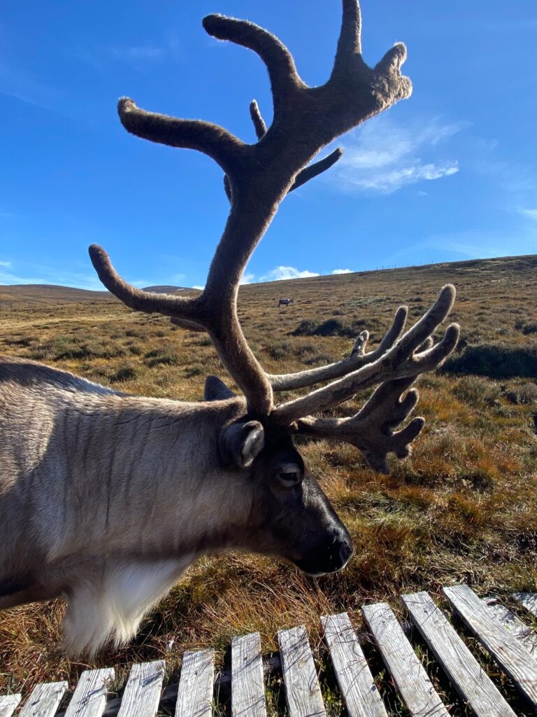 We were close to mid-October when we received a very exciting call about some reindeer being spotted on the free range. Due to it being the rutting season, it meant that us reindeer herders were busy checking on reindeer in our hill enclosure and on Hill Trips meaning there wasn’t really anyone to spare to head out on to the free range. Since we had those two pairs of cows and calves still to be accounted for, we were keen to get out to the group as soon as we can.